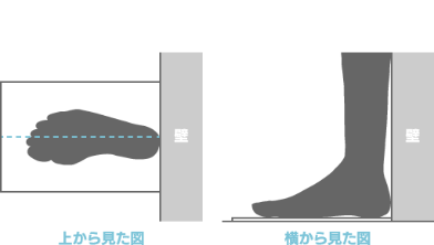 つま先の一番飛び出ている印をつけ、長さを測ります。