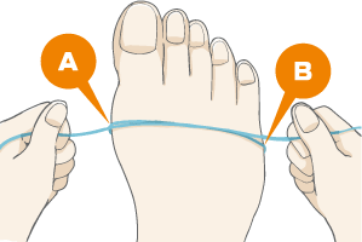 足の親指の付け根から小指の付け根を通って1周させた長さになります。